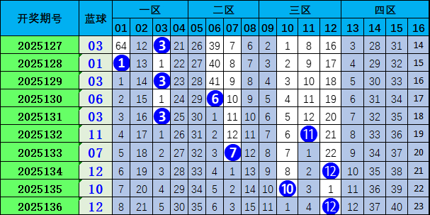 上期蓝球开出偶数号码12。近期奇偶球比值6:4,奇数球走势活跃,本期看好偶数球热出,推荐号码04。