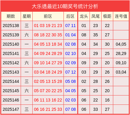 后区分析:近10期后区奇偶比为9:11,大小比为10:10,上期后区开出奖号为07、08,属于奇偶数+大大数。本期推荐后区号码为08、12。