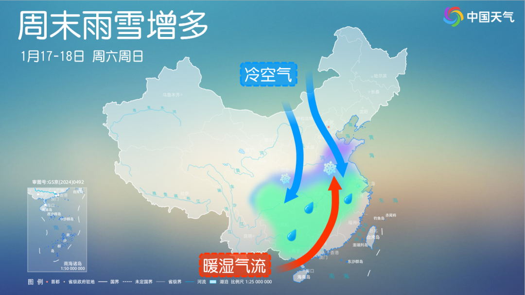 不过,本周末开始,一股强冷空气来袭,这次冷空气不是爆发式南下,而是缓慢向南渗透,不仅会制造大范围降温,还可能激发较大范围雨雪天气。